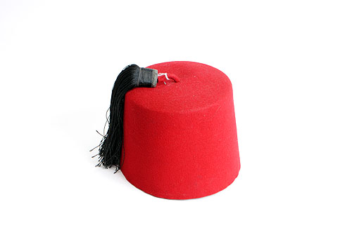 A SHAHI CAP HOUSE KARACHI MAROON FEZ HAT WITH BLACK TASSEL,