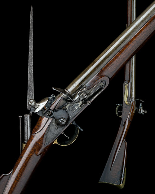 circa 1810, with round 39in. barrel, block fore-sight, moulded band at breech, Tower proofs, borderline engraved lock signed 'TOWER' at the tail and marked with a 'GR' crown device forwards of the hammer, walnut hand-rail three-quarter stock with brass furniture, iron stirrup swivels and iron ramrod, good condition complete with a period socket bayonet for same (pitted and stained, no scabbard)
