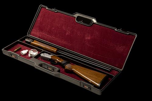 28in. nitro barrels with 7mm ventilated matt rib, 3in. chambers, multichoke (no spares), hold-open toplever, manual safety with integral barrel selector switch, gold-washed trigger, floral and acanthus scroll engraving surrounding game scene vignettes, brushed finish, 14 1/2in. stock including 3/8in. Beretta recoil pad, weight 6lb. 4oz., in a universal case