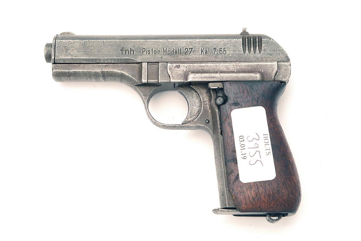 manufactured under Nazi occupation, with late war finished slide marked 'fnh', 3 3/4in. barrel, waffenampt marked frame and smooth walnut grips