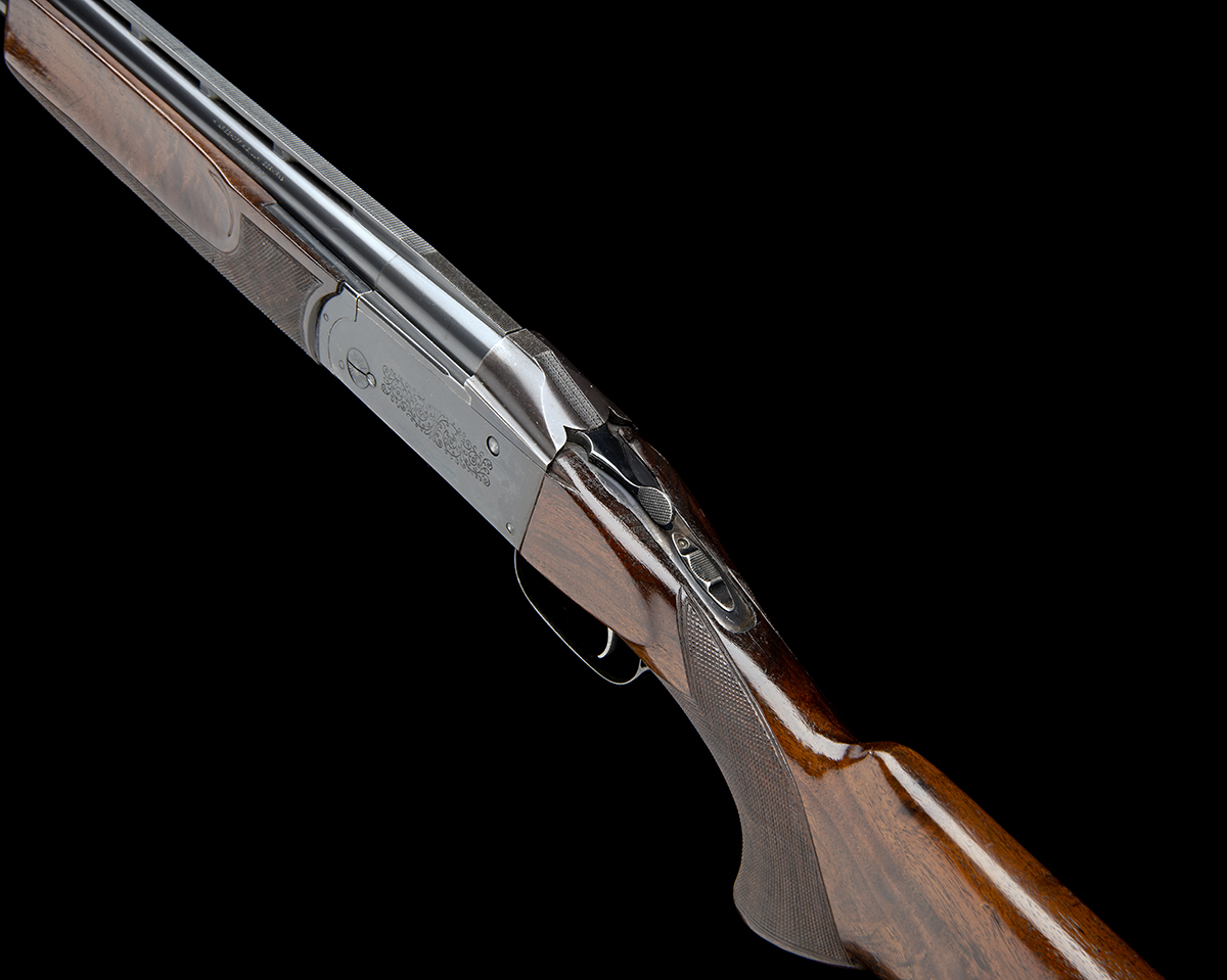 30in. nitro reproved barrels with no mid-rib and 7mm ventilated matt top-rib, 2 3/4in. chambers, bored approx. 3/4 choke in both, hold-open toplever, manual safety, selective single trigger, partial scroll engraving, blacked finish, 14 3/4in. pistolgrip stock including 1in. rubber recoil pad, weight 8lb. 6oz.