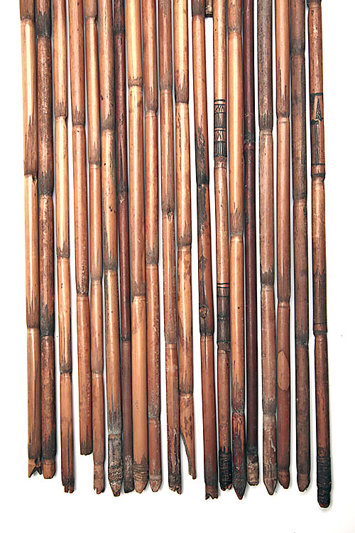 A GROUP OF APPROXIMATELY TWENTY VINTAGE BAMBOO AND CANE ARROWS,