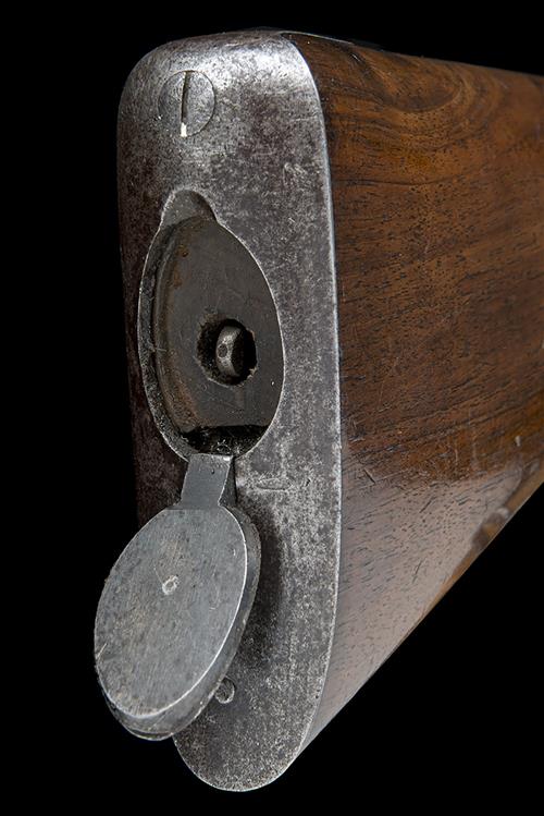 circa 1861, with 20 1/2in. blued barrel, block and blade fore-sight, ladder rear-sight graduated to 900 yds., the rear of breech inscribed 'TERRY'S PATENT 30 BORE', side-mounted lift and twist bolt, plain unsigned borderline engraved lock (traces of colour), walnut full-stock with iron furniture, single key and barrel-band and complete with iron clearing rod