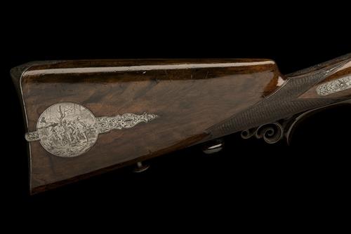 A FINE 28-BORE PERCUSSION DOUBLE-RIFLE, no visible serial number,