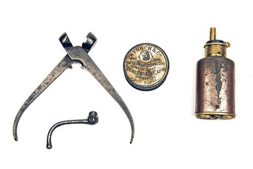 circa 1830, with round 1 3/16in. false rifled turn-off barrels, engraved bands at muzzle and breech, London proofs and scroll engraving to the short ribs, radiused actions with acanthus scroll engraving and signed on the left hand sides 'D. EGG 1 PALL MALL' and the right 'LONDON', carved and engraved dolphin-headed hammers, concealed automatic triggers, guarded lower nipple, sliding safe to the top-tangs and finely chequered flat-form bag-shaped butts mounted with silver oval escutcheons to the wrists, strong traces of finish remaining and complete with their period walnut storage case lined and compartmented in green baize and complete with original splined key, a period example of the smallest J. Dixon three-way flask, a tin for Kynoch caps and a bullet mould
