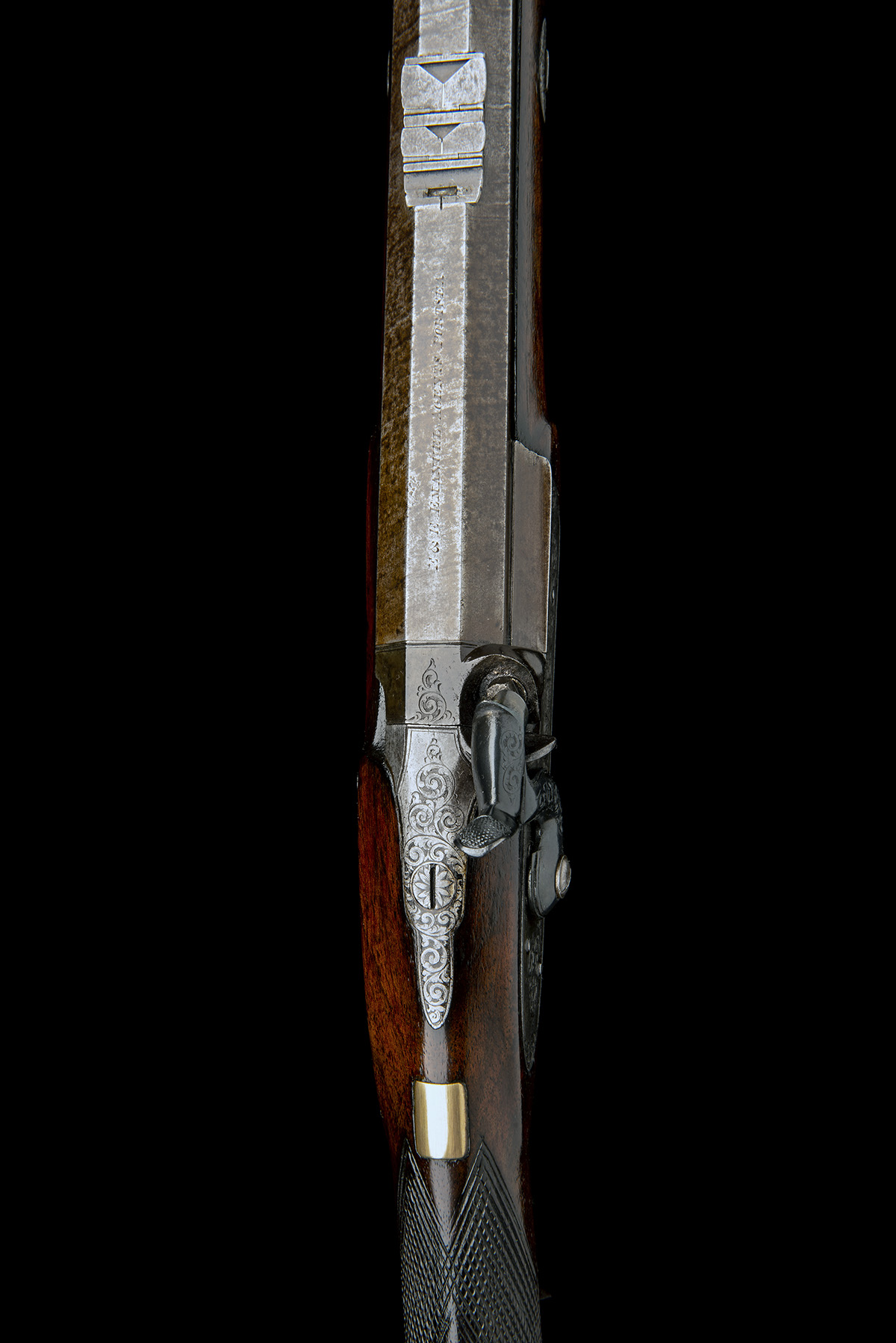 A 20-BORE PERCUSSION SINGLE-BARRELLED SPORTING-RIFLE, no visible serial number,