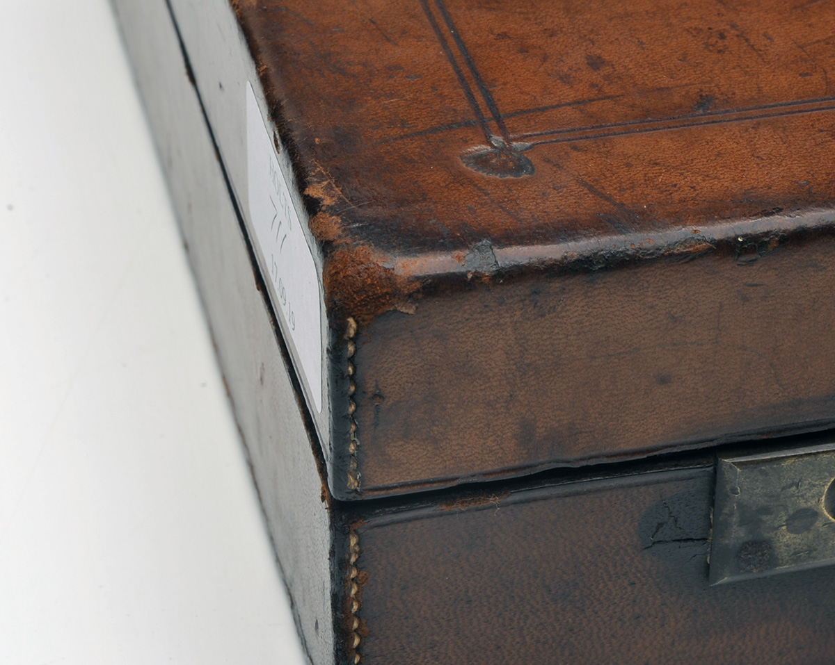 A RARE LEATHER-COVERED CEDARWOOD CASE, POSSIBLY ORIGINALLY FOR A SINGLE PISTOL WITH DETACHABLE SHOULDER-STOCK,
