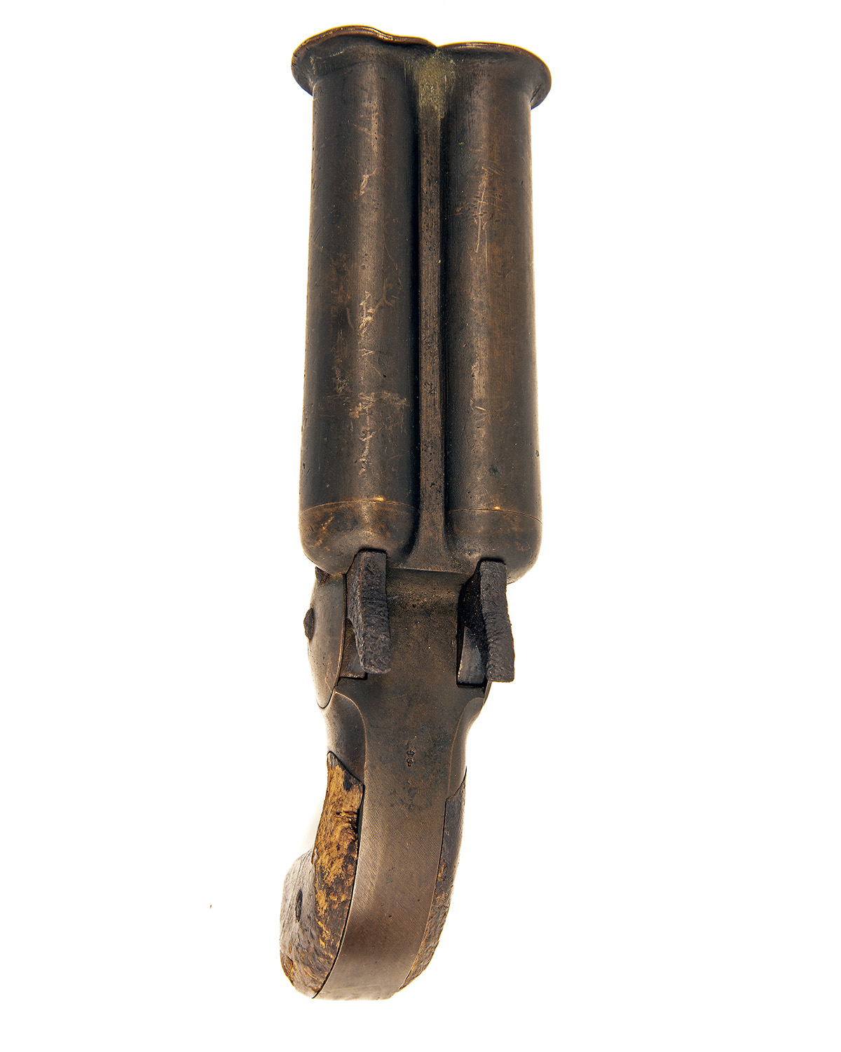AN EXTREMELY RARE 1 INCH (26.5mm) ALL-BRASS DOUBLE-BARRELLED SIGNAL-PISTOL, UNSIGNED, serial no. 357,