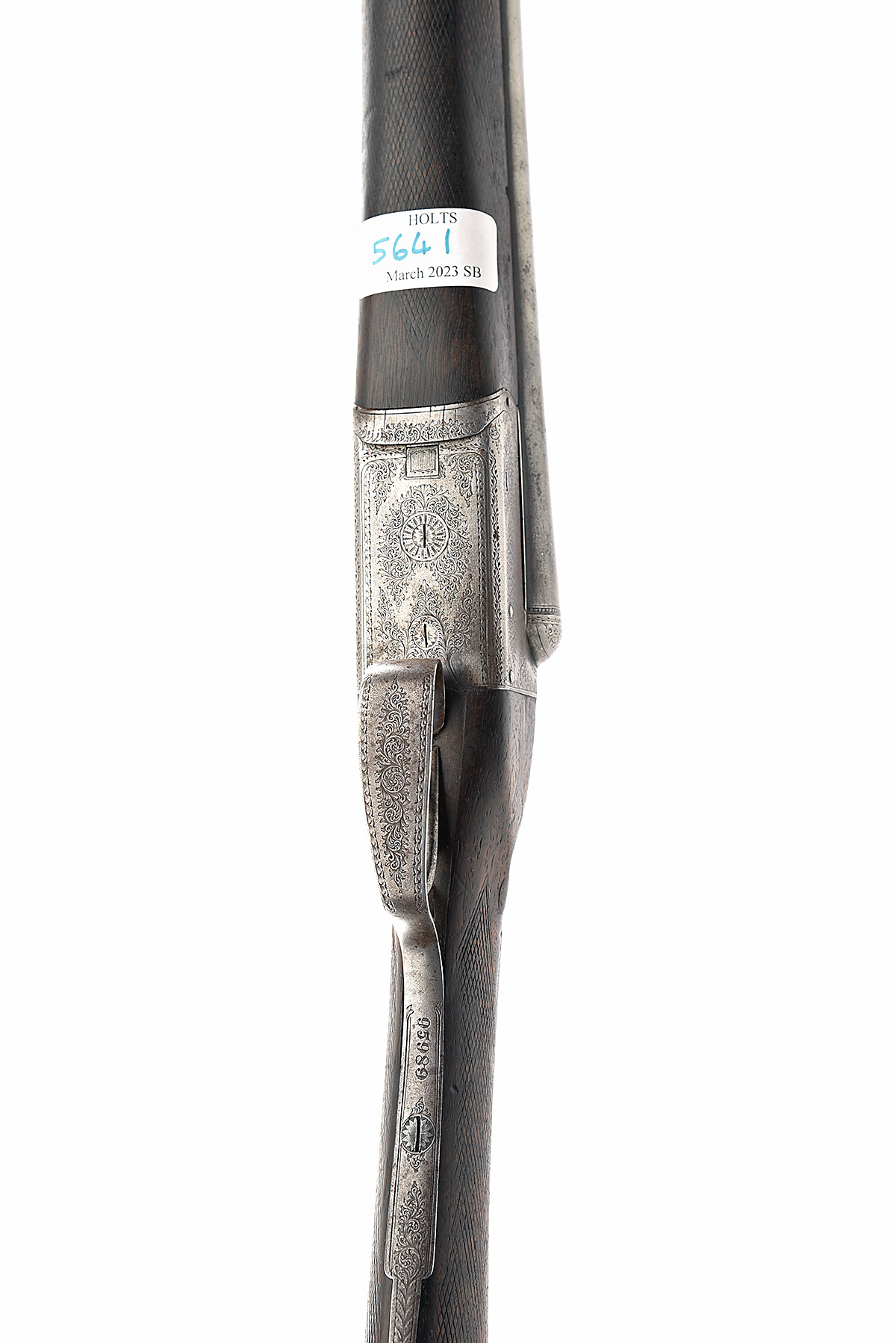 WEBLEY & SCOTT 12-BORE BOXLOCK EJECTOR, serial no. 95989, 28in. nitro barrels (pits, dents and marks), rib engraved 'WEBLEY & SCOTT LTD. 155. VICTORIA STREET. LONDON. S.W.1.', 2 1/2in. chambers, bored approx. imp. cyl. and 3/4 choke, treble-grip action, automatic safety, removable striker discs, border and acanthus scroll engraving, 15 1/4in. stock including 1in. wooden extension, weight 6lb. 6oz.