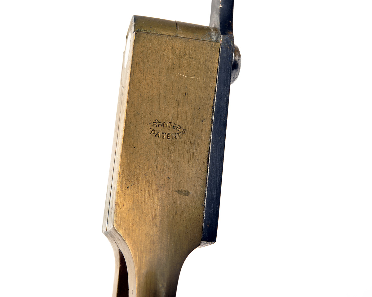 circa 1855, with blued octagonal 6in. barrel engraved with scrolls at the muzzle and scrolls and shells around the barrel throat, dove-tailed pillar and bead fore-sight, standing notch rear-sight to top of standing breech, the border and scroll engraved top-strap signed 'W. TRANTER PATENTEE', colour hardened borderline and scroll engraved five-shot cylinder, fully scroll engraved blued solid frame with contrasting royal blue screws and springs, polished spurless hammer and patent trigger, swept chequered walnut saw-handled grip with engraved and colour hardened domed butt-cap, polished Tranter's Patent articulated rammer with borderline and scroll engraving and engraved mounting screw, the whole retaining the majority of its original finish, polish and colour (losses mostly to barrel-flats from case storage) and complete with its maker's original walnut storage case lined and compartmented in dark blue baize and containing a Tranter's Patent double cavity mould, a loading rod, nipple-key, powder flask, bullets and caps, wads and an oil bottle, all also in fine condition.