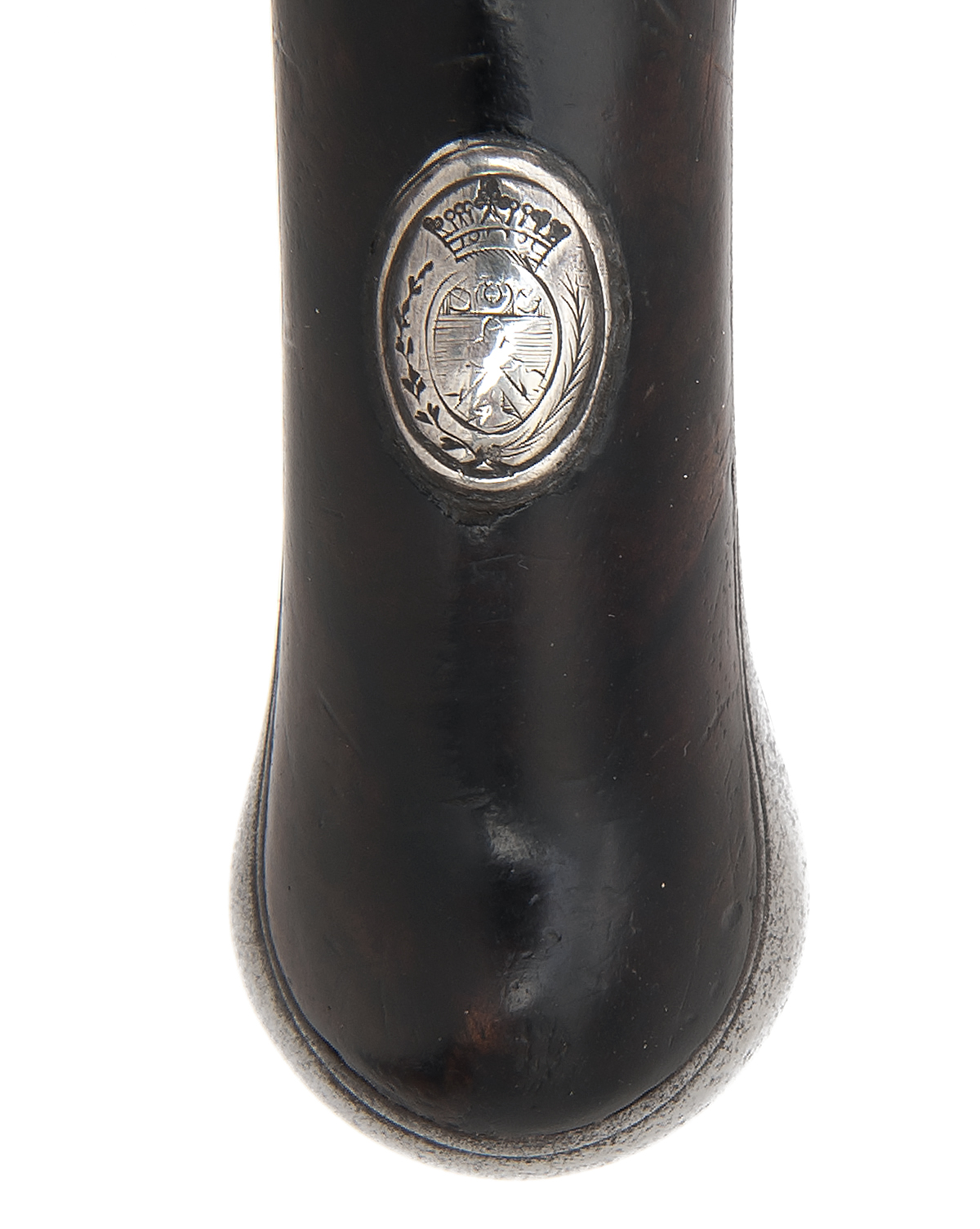 French or Belgian circa 1775, wit two-stage tapering iron side-by-side 4in. barrels, traces of engraving to the top surface, top-tang with moulded sighting-groove, radiused plain lock with pointed tails and swan-necked cocks, walnut full-stock with carved borders around the iron furniture, carved floral apron and engraved escutcheon at wrist, complete with a horn-tipped ramrod