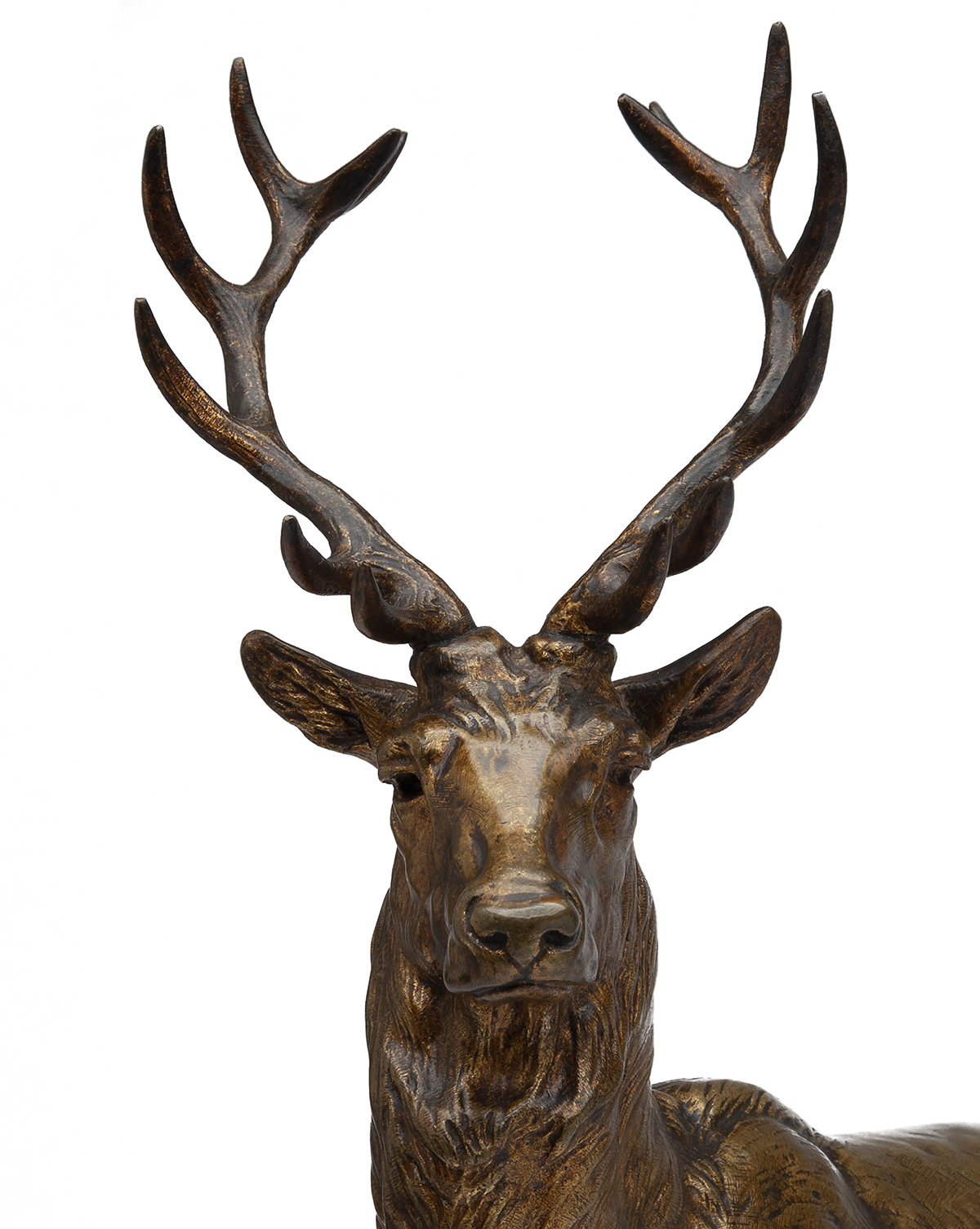 AN ORIGINAL FINE FRENCH GILT BRONZE SCULPTURE OF A FOURTEEN-POINT STAG,