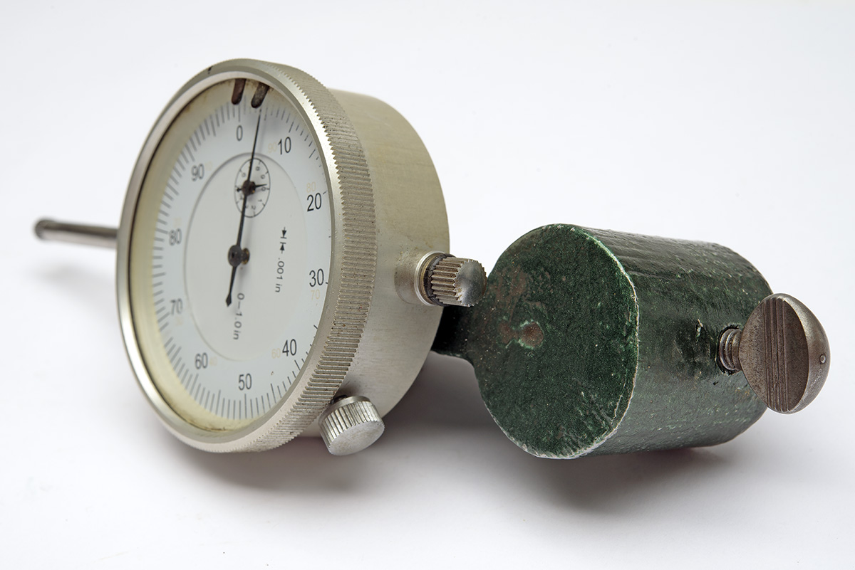 with steel base, three upright prongs suitable for measuring 12-bore to .410, with imperial gauge