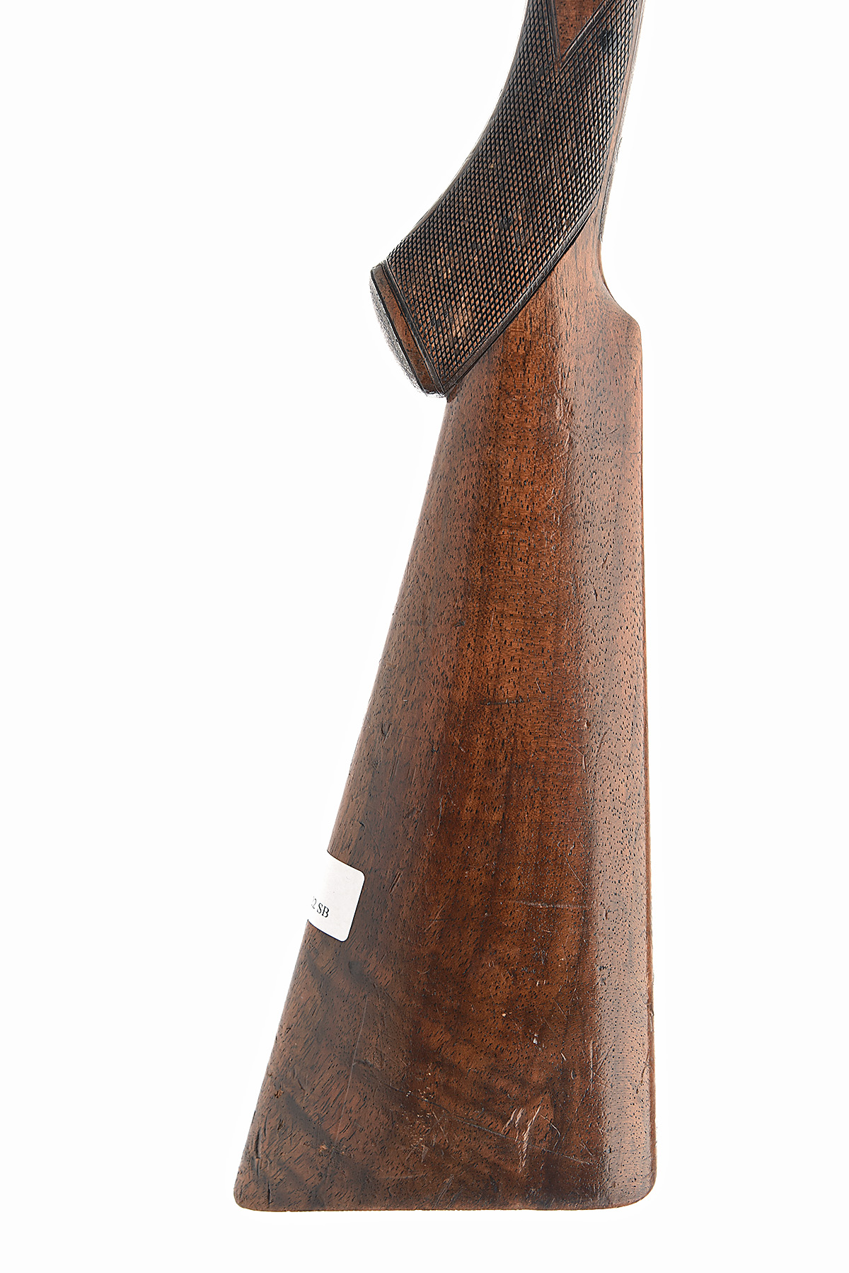 ARMY & NAVY C.S.L. .22 L.R. SINGLE-BARRELLED SIDELEVER ROOK RIFLE, serial no. 22644, 26in. lined octagonal barrel with matted top flat, engraved 'ARMY & NAVY C.S.L. LONDON., tunnel fore-sight (detached), V rear-sight with 2 x folding sights,central mounted rebounding hammer, unsigned action, beaded border with partial scroll engraving, 14 5/8in. semi-pistolgrip stock
