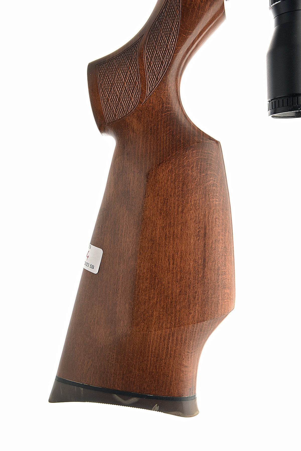 A .22 UNDER-LEVER COCKING AIR-RIFLE, SIGNED WEIHRAUCH FOR HULL CARTRIDGE 'MODEL HW97K', serial no. 1752165, 14 1/2in. barrel including sound moderator, receiver fitted with a Nikko Stirling Gameking Side LRX 6-24x50 AO IR LRX telescopic sight, manual safety, gold-washed trigger, chequered walnut halfstock with cheekpiece, 14 1/4in. pull including ventilated rubber recoil pad