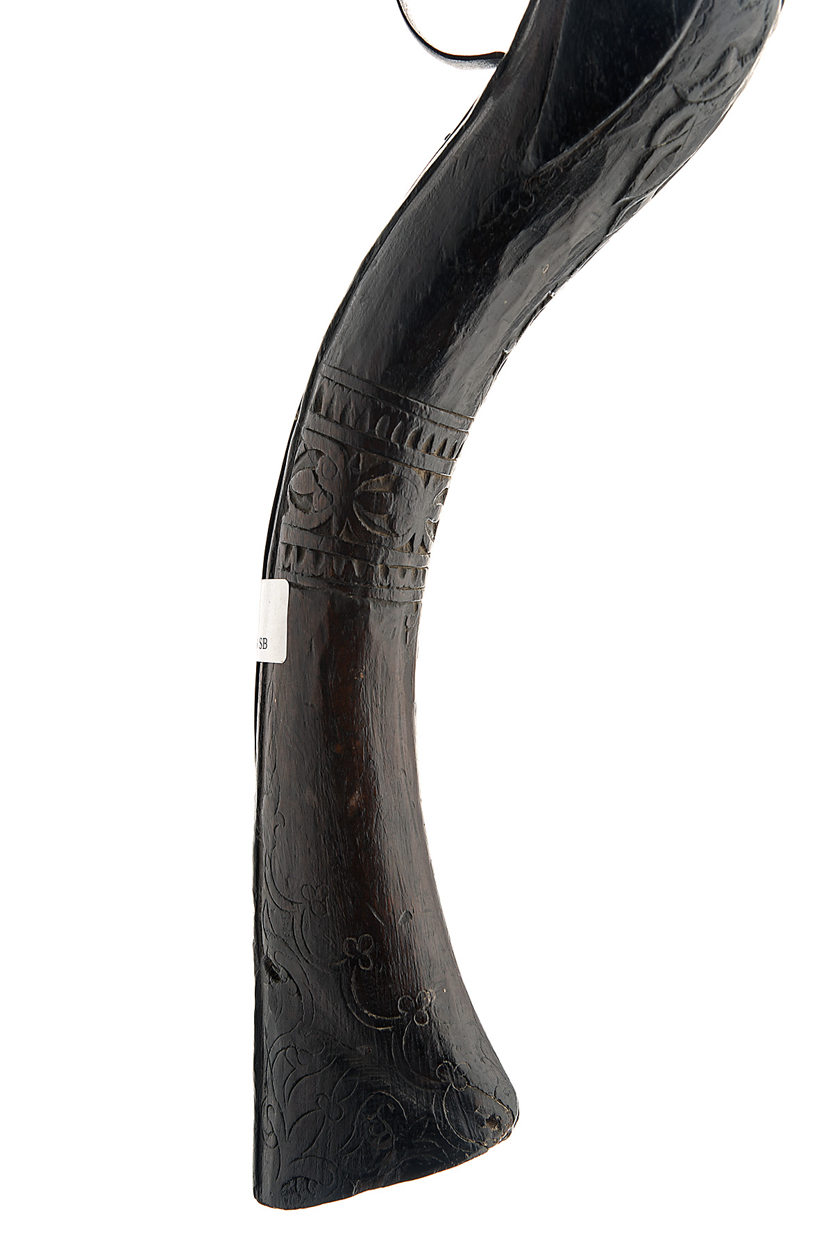 AN INTERESTING ,54 FLINTLOCK AFGHAN JEZAIL, CIRCA 1850, no visible serial number, 30 in twist barrel having a flared muzzle with copper bead front sight, the breech with a raised flange with sighting hole, as typical of these arms it has an East India Company lock this example being a Baker's 1819 pattern, the rampant lion cypher has been erased and a native symbol engraved in its place, fitted with bun-nut retained ring-neck cock, full walnut stock, with Scinde type of curved butt, which is embellished with carved decoration., iron trigger-guard, the barrel retained to the forend with four iron wire type bands,
