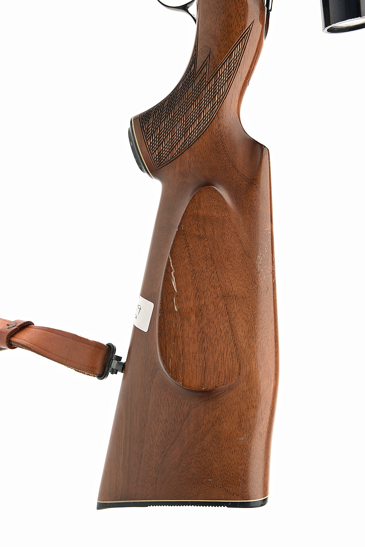 J.G ANSCHUTZ .22 HORNET 'MODEL 1433' BOLT-MAGAZINE STUTZEN SPORTING RIFLE, serial no. 1261416, circa 1983, 19 1/2in. nitro barrel, hooded ramp-mounted bead fore-sight, tangent rear-sight, fitted with a Bushnell Banner telescopic sight, manual flag safety, detachable magazine, pistolgrip full-length stock with cheekpiece, leather sling