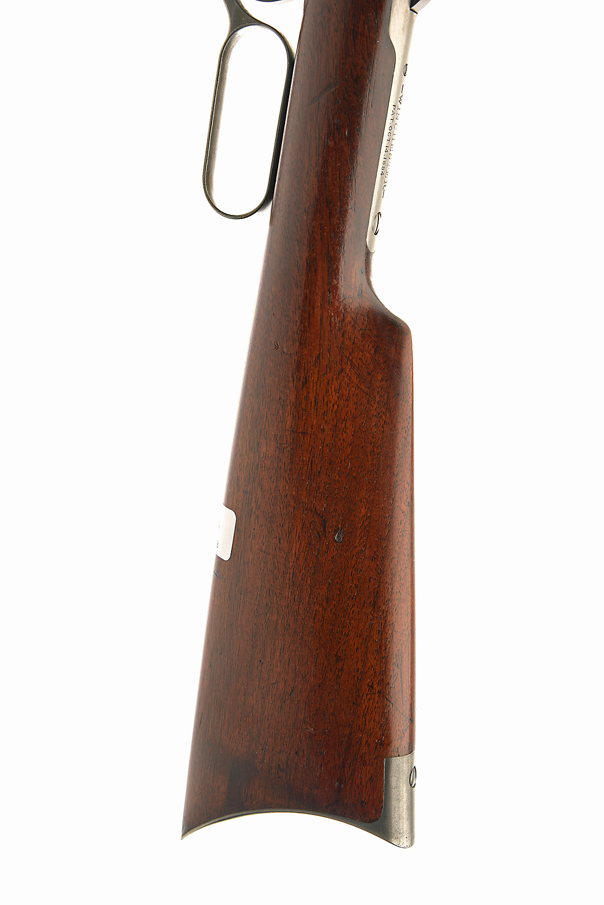 for 1903, with octagonal 25 1/4in. relined replacement barrel, nickel-bladed fore-sight, buck-horn rear-sight, the top-flat of barrel matted with a roll engraved pattern, bright finished action and lever, walnut butt-stock with crescent heel-plate and walnut fore-end with full-length magazine tube