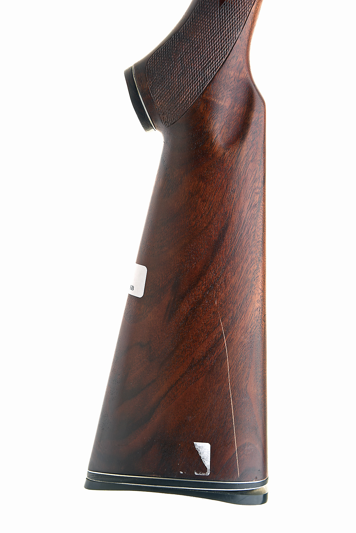 SHADOW 12-BORE 'F-1' SEMI-AUTO SHOTGUN, serial no. J33441G, circa 1976, restricted magazine, 26in. nitro barrel with 13mm ventilated matt rib, 2 3/4in. chamber, bored approx. true cyl., manual push-button, blacked action with silver side-panels engraved with acanthus scroll, 14 3/4in. pistolgrip stock including buttplate (missing one screw), weight 7lb. 4oz.