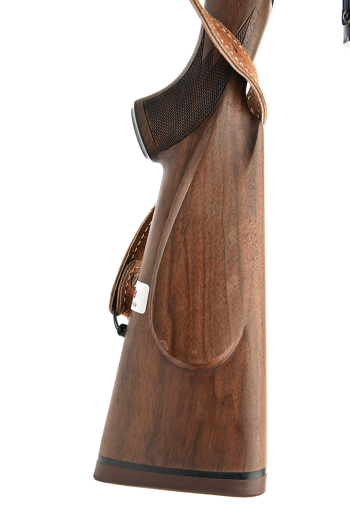 HEYM 7mm REM. MAG. BOLT-MAGAZINE SPORTING RIFLE, serial no. 33439, dated 1990, 24in nitro barrel with ramp-mounted blade fore-sight, rear open sights, receiver fitted with a Zeiss 'Diavari-Z' 1.5...6x42 telescopic sight, manual safety, hinged floorplate, pistolgrip stock with cheekpiece, suede sling, 14 1/4in. pull including 3/4in. rubber recoil pad, weight 9lb. 10oz. (scoped)