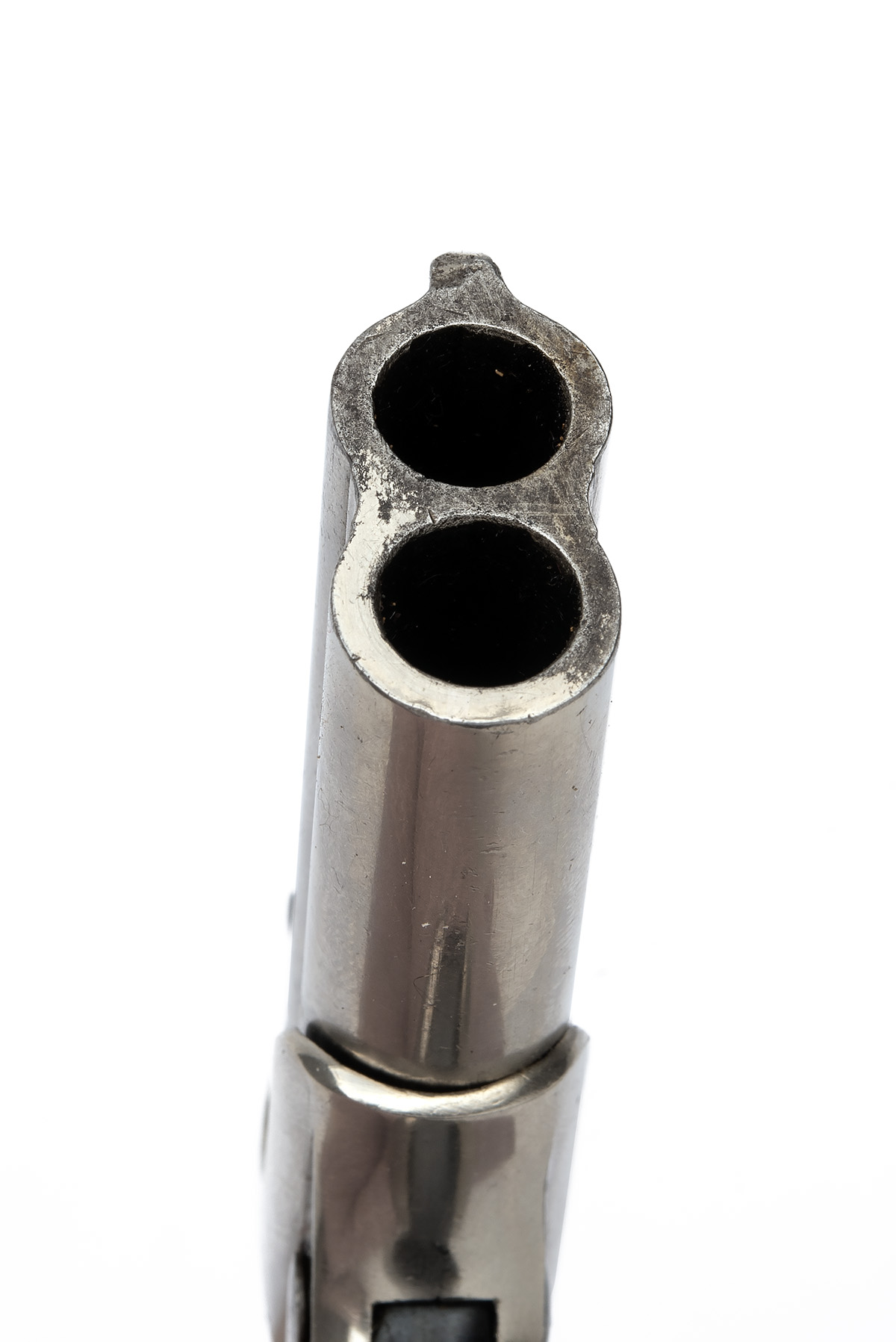 type II (or model 3) variation for between 1888-1911, with nickel-plated 3in. barrels, raised rib with integral fore-sight, the rib signed 'REMINGTON ARMS CO. ILION N.Y.', nickel-plated receiver with blued barrel lock and spur trigger, central hammer and chequered gutta-percha semi birdshead grips, much plated finish remaining and good hinge