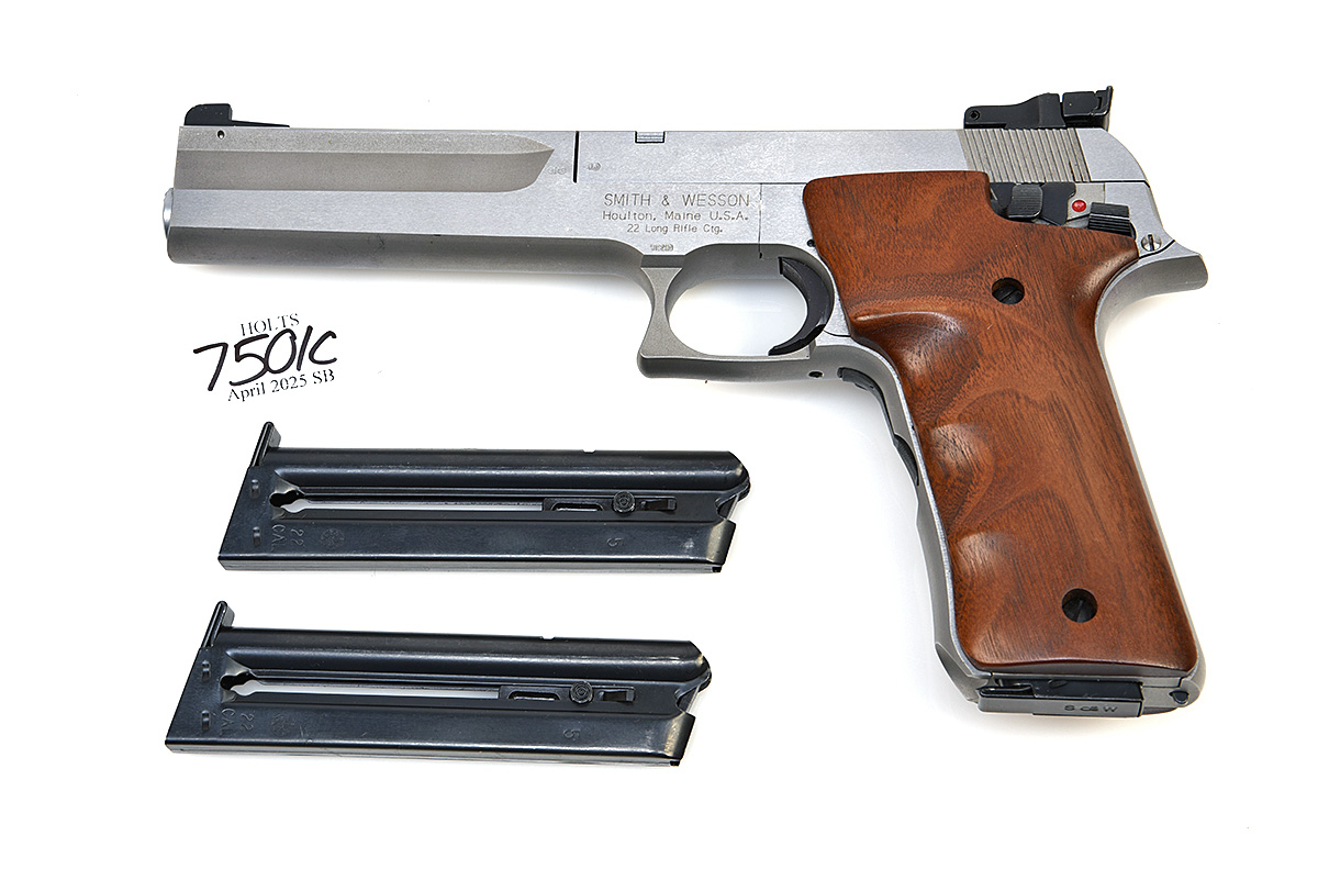 A CASED SMITH & WESSON .22(L/R) MODEL 2206 TARGET-PISTOL, serial no. UAH4137, with stainless-steel 6in. bull-barrel, stainless steel slide and frame, smooth moulded walnut grips and adjustable Millet sights, in its maker's abs plastic carry case with two further magazines