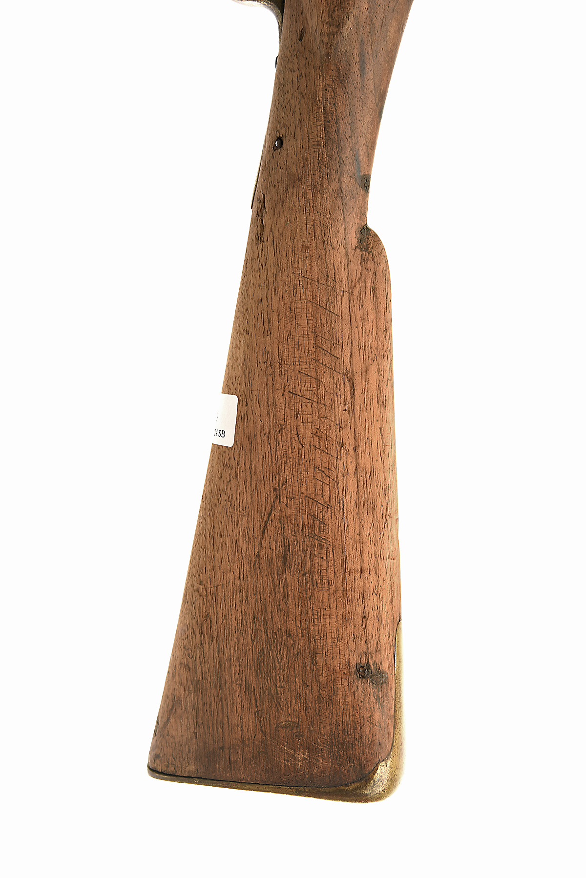 A .750 FLINTLOCK EAST INDIA COMPANY BROWN-BESS MUSKET SIGNED BAKER, no visible serial number, dated for 1805, with round iron 39in. barrel (currently partially obstructed), signed lock dated at the tail together with the E.I.C. heart trademark, walnut full-stock (cleaned of finish, small losses), brass furniture and iron ramrod (frozen)