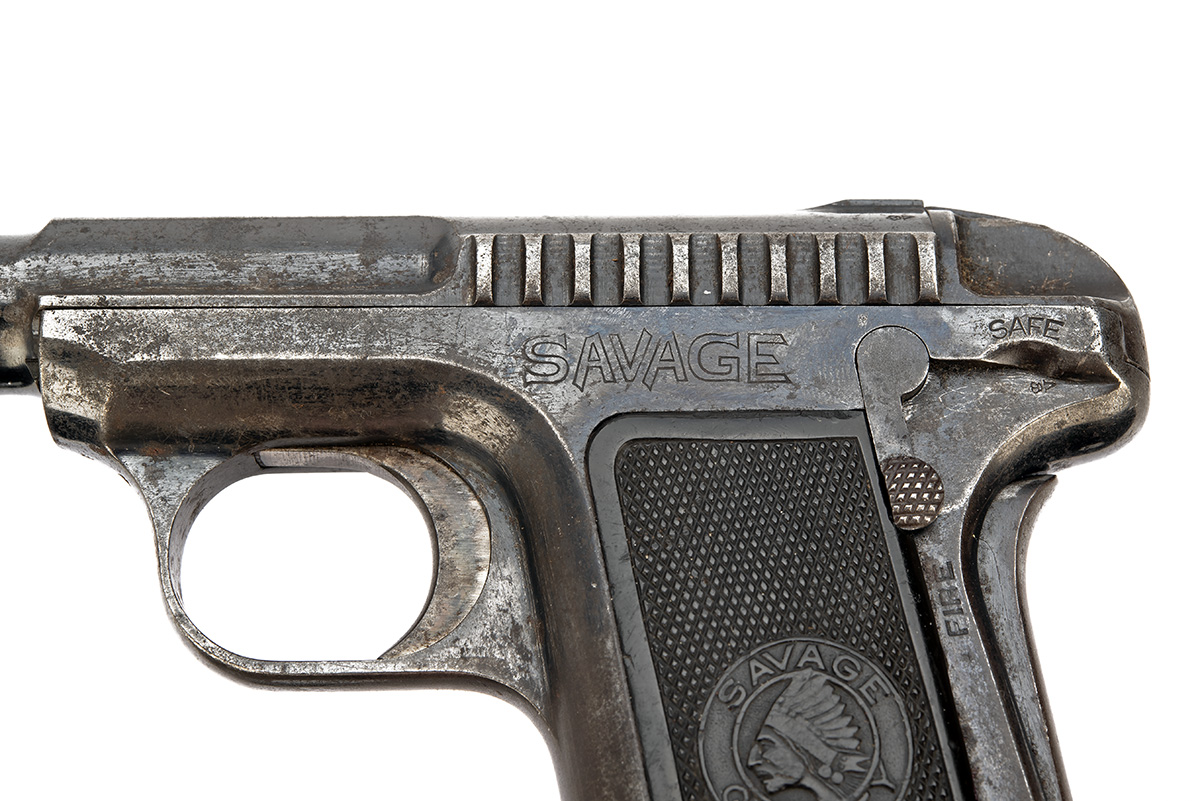 * A 7.65mm (.32 ACP) SAVAGE MODEL 1915 HAMMERLESS SEMI-AUTOMATIC PISTOL, serial no. 134103, with concealed 3 3/4in. barrel, blued slide and frame, black chequered hard rubber grips, strong amount of finish