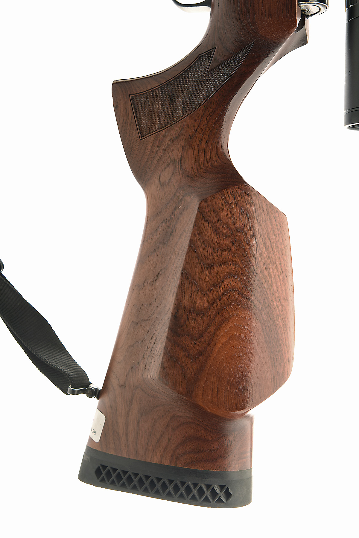 AN F.A.C. RATED THEOBEN .22 'ELIMINATOR' AIR RIFLE, serial no. 19977, 21 /2in. barrel including permanently fixed sound moderator, receiver fitted with a Hawke Vantage 4-12x50 telescopic sight, serial no. 14251, manual trigger safety, blued finish, pistolgrip halfstock with cheekpiece, 14 1/4in. pull including ventilated rubber recoil pad, sling