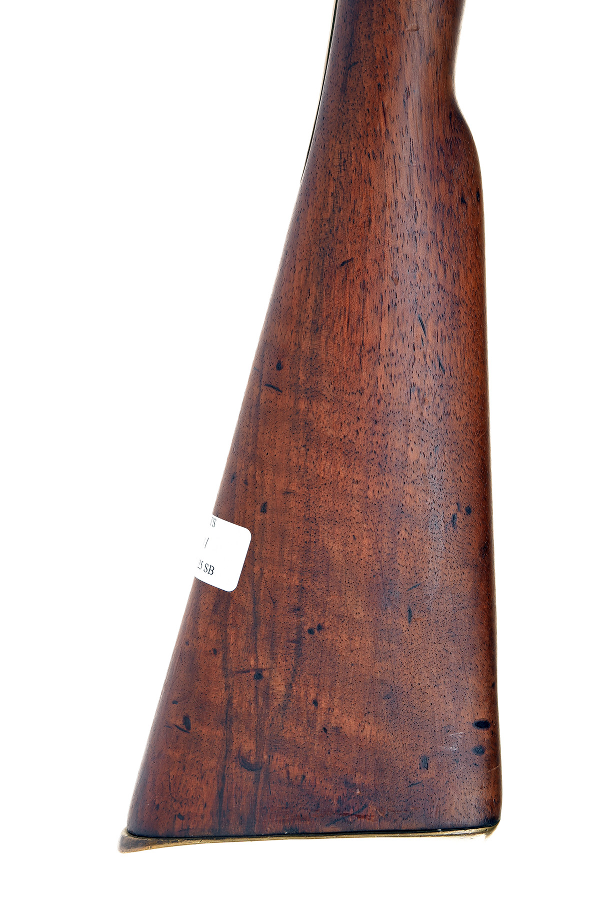 * A .577 SNIDER CARBINE, serial no. L13G, Belgian manufacture, with sighted 19in. barrel, flip-open breech, lock with added registration number and walnut half-stock with brass furniture, single iron barrel-band and no provision for clearing rod, finish worn