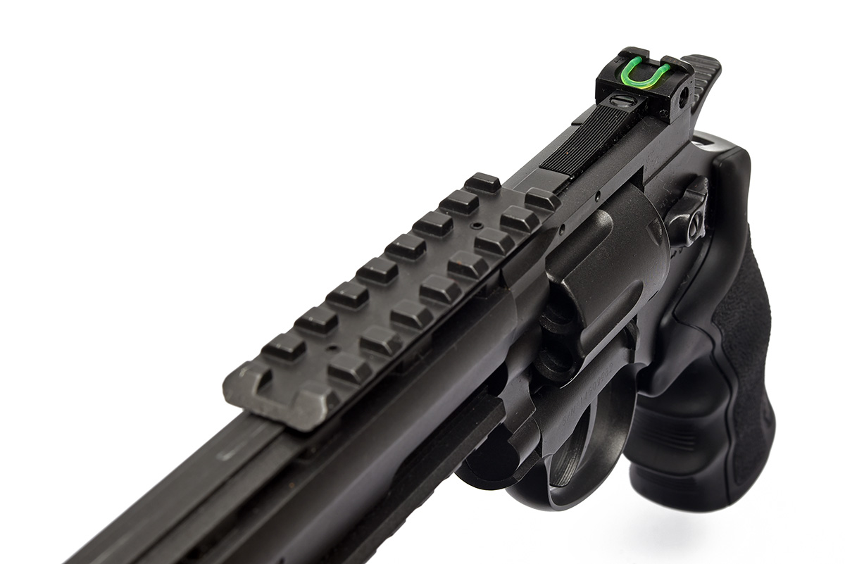 A .177 BLACK OPS CO2 POWERED AIR-PISTOL, serial no. 14G09982, with 8in. ported barrel, swing-out cylinder, double action mechanism and stippled black plastic grip, untested