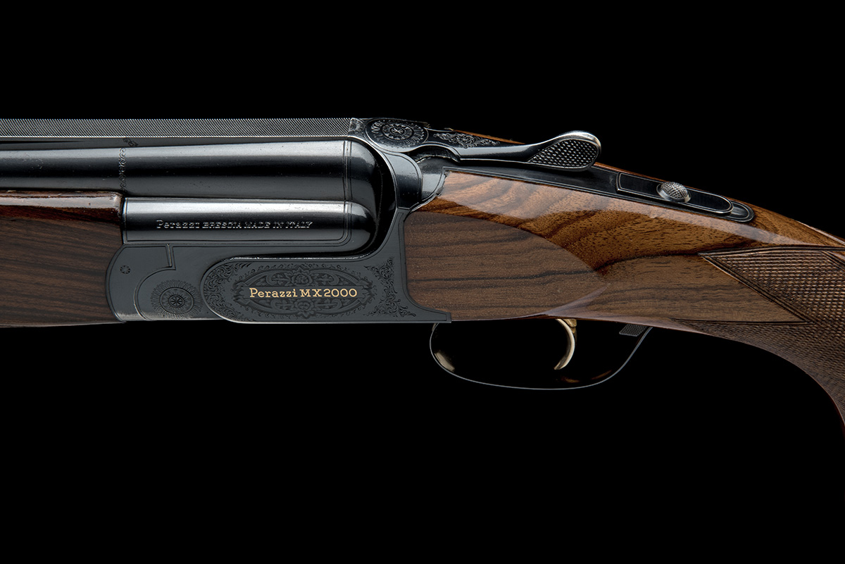 for 2004, 33 1/2in. nitro reproved barrels with tapered ventilated matt top-rib (missing bead fore-sight) and ventilated mid-rib, 2 3/4in. chambers, Teague multichokes (with spares), hold-open toplever, manual safety, triggerplate mounted barrel selector switch, gold-washed trigger, the action and furniture carved with floral and scroll designs, the make and model designation inlaid in gold, black action, 14 5/8in. pistolgrip stock, schnabel fore-end, weight 8lb. 3oz., in its leather bound universal case