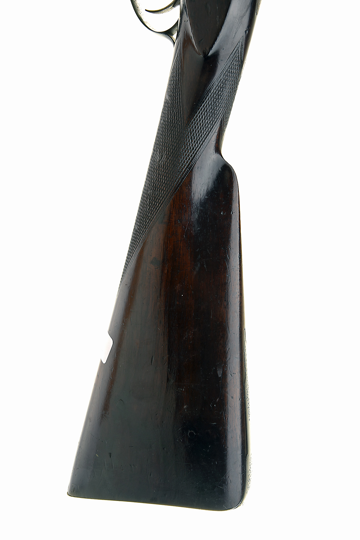 AN 8-BORE PERCUSSION SINGLE-BARRELLED FOWLING-PIECE CONVERTED FOR LIVE PIGEON, UNSIGNED, no visible serial number, circa 1845 with conversion circa 1865, with rebrowned tapering round 34 1/2in. barrel, re-engraved bar-action lock, chequered walnut half-stock, the fore-end tip rounded off and filled over a pre-existing ramrod aperture, square-fronted trigger guard bow