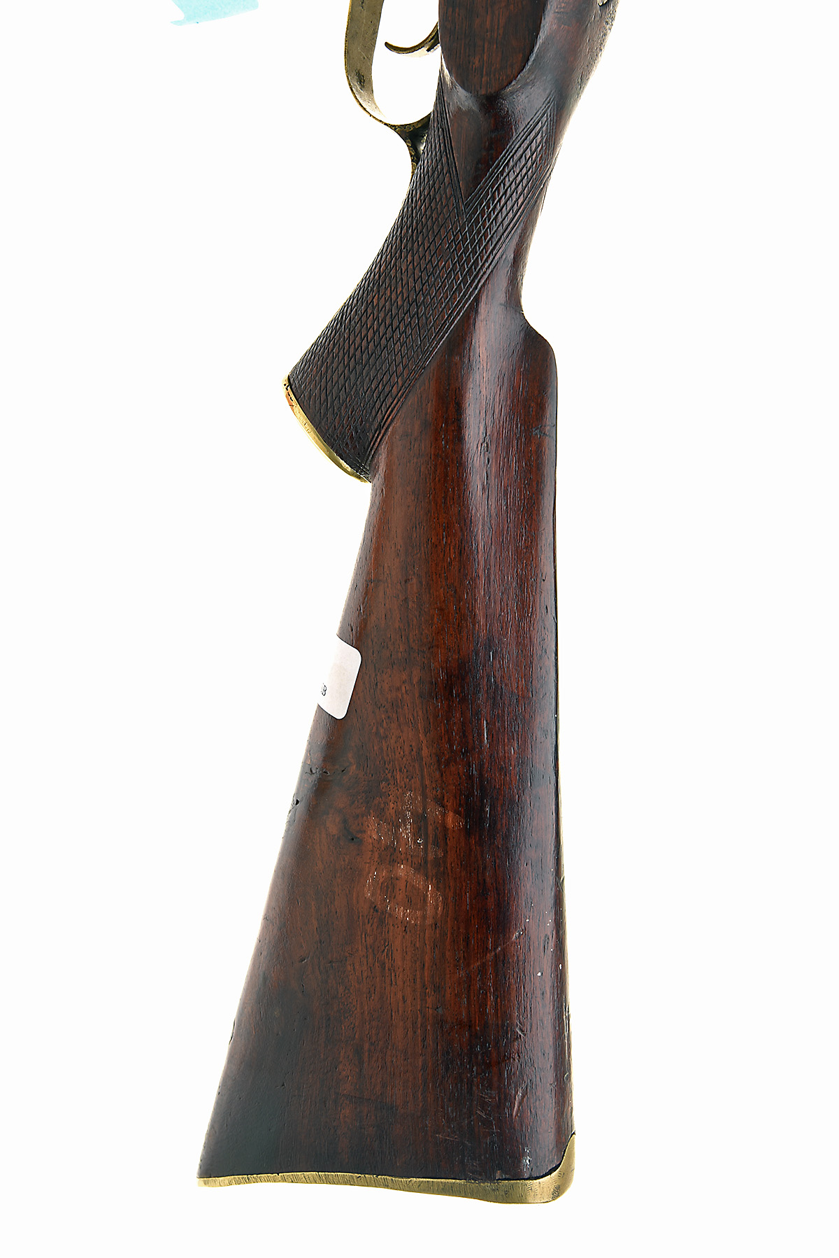 A .600 PERCUSSION SPORTING MUSKET, UNSIGNED, serial no. 40, for domestic Indian consumption, with round 32 1/2in. barrel, bar action lock with struck-out 'TOWER' stamp (probably spurious), chequered teak pistol-grip half-stock, brass furniture with iron ramrod