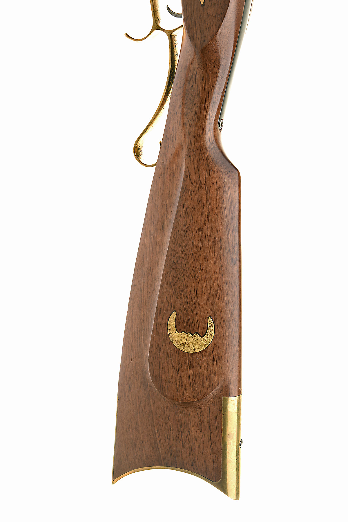 A .45 Cal PERCUSSION MATCH-RIFLE SIGNED ARDESA, MODEL 'HAWKEN MATCH', serial no. 14-13-043560-05, for 2005, with blued heavy octagonal 33in. barrel, tunnel fore-sight, buckhorn rear-sight and tang peep-sight, engraved colour-hardened lock, walnut half-stock and engraved brass furniture, brass butt plate, cheek and ramrod, in its makers carton