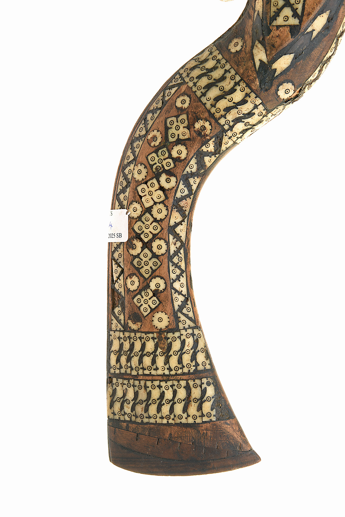 AN 18-BORE FLINTLOCK NEAR EASTERN MUSKET, UNSIGNED, no visible serial number, probably Indo-Pakistani tourist circa 1920, with 32 1/2in. barrel, offset muzzle, peep rear-sight, hardwood full-stock of Sind style inlet with bone geometrics, unguarded trigger