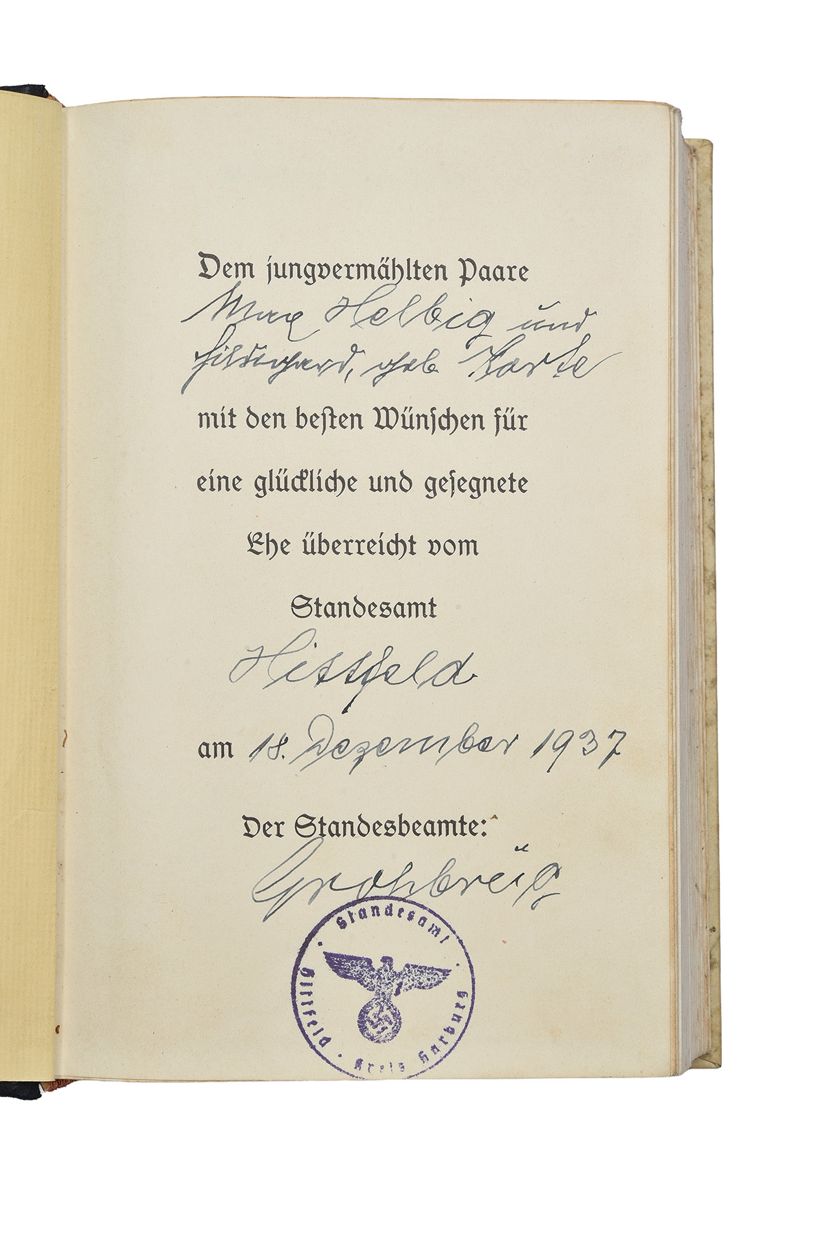 including a 1936 N.S.D.A.P. copy in its blue cover, a 1937 N.S.D.A.P. copy in its slip case (split) and half-bound marbled covers with a presentation inscription and a letter of presentation dated 1937 (all in German language), a 1939 unexpurgated copy by Reynal & Hitchcock, New York and a 1937 Methuen copy of 'The House That Hitler Built' (blue covers, loss to end papers), both in English, some wear and foxing to all