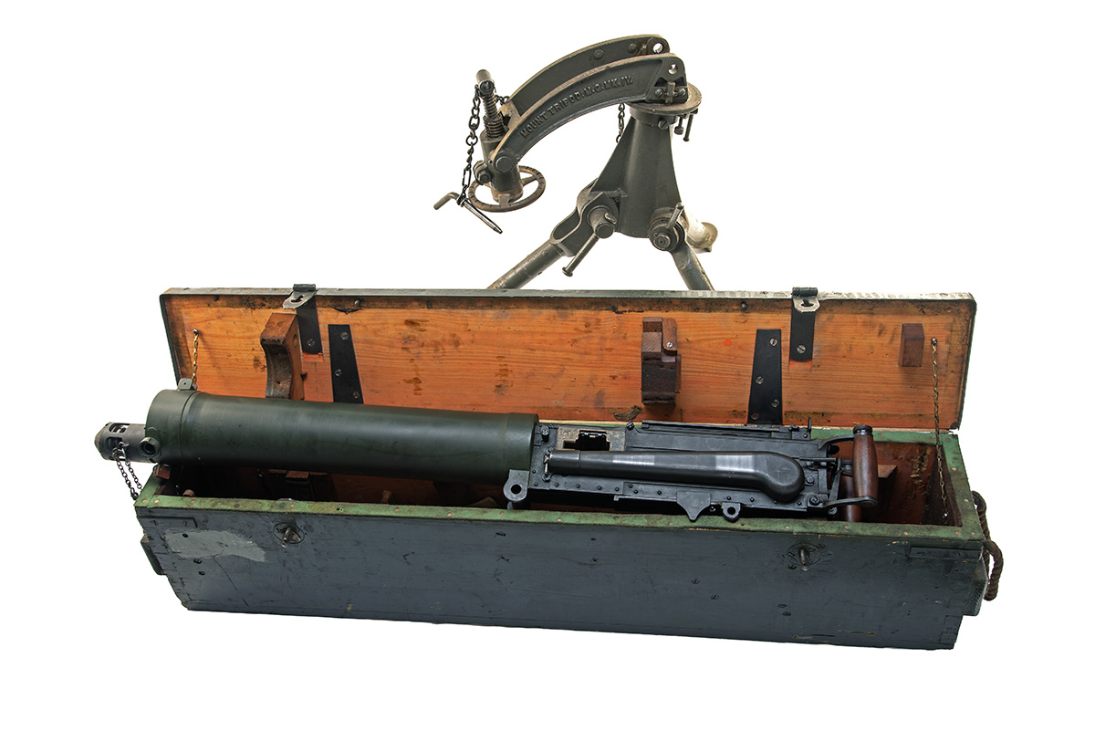 A DEACTIVATED .303 (BRIT.) 'VICKERS' MEDIUM MACHINE GUN WITH TRANSIT CHEST AND TRIPOD, serial no. 8027,