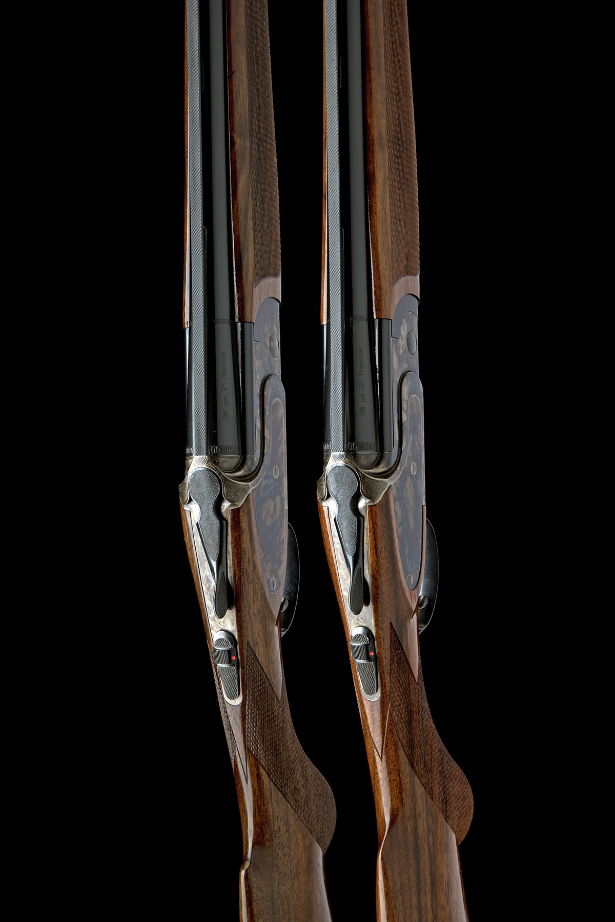 for 2003, 28in. nitro barrels with 6mm ventilated matt top-ribs, 3in. chambers, multichokes (with spares), hold-open toplevers, automatic safeties with integral barrel selector switches, retaining virtually full original colour-hardened finish, triggerplates signed 'Bottega C. Giovanelli', 14 5/8in. figured semi-pistolgrip stocks including wooden buttplates, weight 6lb. 4oz., in a universal case