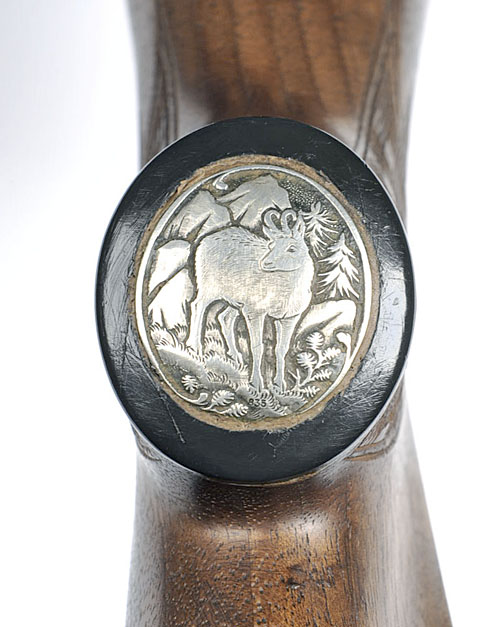 60cm. blued spirally faceted nitro sighted barrel, blued receiver fitted with quick detachable scope rings, 14 3/4in. pistolgrip stock with raised Monte Carlo cheek-piece, chequered grip and fore-end, set triggers, blued sling mounts.