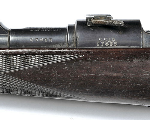 Other Notes: The makers have kindly confirmed that this rifle was completed on 21st September 1933 for a Mr. P.M. Stewart with 24in. barrel, 14 1/2in. stock and telescopic sight.