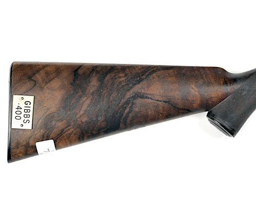 circa 1887, with 28in round barrel inscribed 'METFORD 1415' and signed 'GEORGE GIBBS, 39 CORN STREET, BRISTOL' (rubbed) with bead and block foresight and triple folding leaf express rearsight calibrated to 200yds, with further elevating peep sight to breech end, colour hardened action profusely covered with fine scroll engraving, signed by the maker on the left hand side and marked 'FARQUHARSON'S PATENT 342' on the right, together with a lever and bolted safety catch with the word 'BOLTED' in gold, highly figured walnut chequered stock and forend (shake in wood at front of comb, incorrect armoury identification plate to side of butt at heel), horn pistol-grip and forend cap, silver escutcheon engraved with the initials 'A.C.B.' to underside of stock, small vacant shield escutcheon forwards of the heel and horn heel-plate. We are kindly informed by the makers that this rifle was completed in 1884.