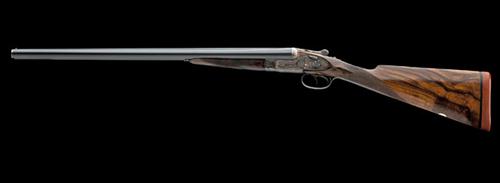 25in. nitro chopperlump barrels, with Churchill-ribs gold-inlaid 'AYA' '1' and '2', 2 3/4in. chambers, bored approx. imp. cyl. and 1/2 choke (both), toplevers gold-inlaid '1' and '2', automatic safeties with gold-inlaid 'SAFE' details, hand detachable sidelocks, gold-inlaid cocking indicators, articulated front triggers, gold-washed internals, rolled-edge triggerguards (left side) bouquet and scroll engraving, retaining much original colour-hardening and finish, 15 1/4in. figured stocks including 1in. rubber recoil pads (No.1 cracked and repaired), weight 6lb. 8oz. (both), in a leather double motorcase with canvas and leather outer