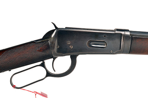 A SCARCE WINCHESTER REPEATING ARMS, USA .30-30 (WIN) TAKE-DOWN LEVER-ACTION REPEATING RIFLE, MODEL '1894 SPECIAL ORDER', serial no. 15433, for 1895, with 26in. octagonal barrel, dove-tailed blade fore-sight, buckhorn rear-sight with adjustable blade, blued receiver, the top-tang drilled for peep-sight, the tapped hole with keeper screw and stamped with 'MODEL 1894 WINCHESTER PAT. AUG. 21 1894', figured walnut chequered straight-hand butt-stock, iron crescent butt-plate, walnut fore-end, blued nose-cap, full-length under-barrel magazine with take-down lever, refinished with some loss to detail