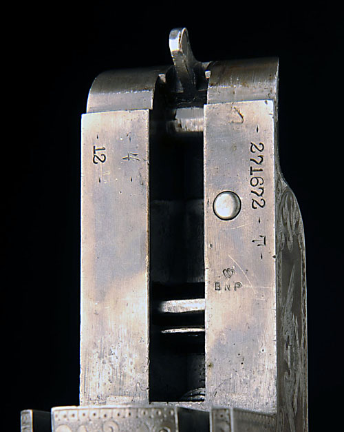 circa 1916, with 32in. nitro reproved barrel with raised ventilated matt rib, 2 3/4in. chamber, bored approx. full choke, hold-open toplever, cocking lever return stud, the action engraved with acanthus scroll on a matt background surrounding vignettes of a trap shooter in Edwardian attire on the left, the right engraved 'MADE - IN - U-S-A-' surmounting the seal of the United States of America, retaining some original colour-hardening and finish, 14 3/4in. figured semi-pistolgrip stock including 1in. ventilated rubber recoil pad, the fore-end with push-button release, weight 7lb. 11oz.