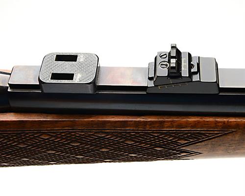 23 7/8in. nitro barrel with adjustable open sights and ramp-mounted bead fore-sight, the receiver mounted with a Zeiss Diatal-Z 6x42 telescopic sight in quickly-detachable mounts, set triggers, pistolgrip stock with sculpted cheekpiece, monte carlo comb, pistolgrip-cap, sling swivels, 14 7/8in. pull including 7/8in. ventilated rubber recoil pad