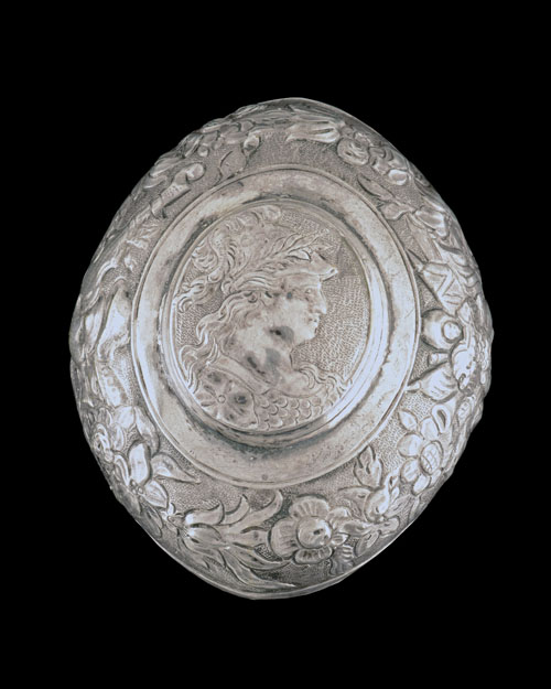 circa 1750, with false damascened slightly swamped octagonal 11 3/4in. barrels, the top and side flats further decorated with inlaid silver arabesques, the muzzles carved with beaded bands and inlaid with a single silver band, the breeches en-suite, gold-lined touch-holes, engraved solid top-tangs featuring a stylised number '1' and '2' respectively, flat bevel-edged lockplates with stepped tails and signed 'J. SERAIN A SAUMUR' (faint, rubbed), the locks engraved with a seated figure of Cupid above a scrolled serpent, further cherubic figures to the tails, engraved hammers, lozenge-shaped pans, the frizzens carved with grotesques and featuring tails formed as serpents, figured walnut full-stocks carved with flowers and scrolls around the top-tangs and ramrod throats, carved borders around the ramrod channels, locks and trigger-guards, white metal rococo shell escutcheons to wrists surrounded by inlaid wire scrolls, white-metal long-eared butt-caps embossed with flowers, musical and marshall trophies, Romanesque masks to pommels, carved rococo shell trigger-guard bows and finials, carved and moulded white-metal rococo sideplates featuring hunting dogs pursuing wild boar, carved and turned ramrod pipes and mushroom-headed wood ramrods (locks brushed bright as original but with some loss to detail)