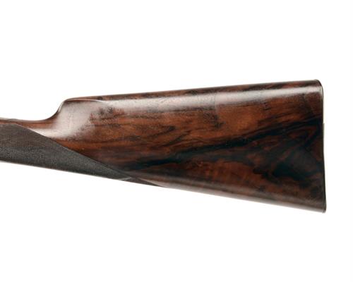28 1/2in. nitro reproved barrels (in 2015) with 7mm ventilated matt top-rib, three-piece fore-end, 2 3/4in. chambers, bored approx. full choke in both, bolstered action, manual safety, hand-detachable lockplates with concealed flush-fitting release catch, cocking-indicators, gold-washed internals, articulated front trigger, 14 1/4in. figured stock including buttplate, weight 6lb. 14oz., in a leather case with original paperwork confirming the gun was originally proofed on the 19th May 1941