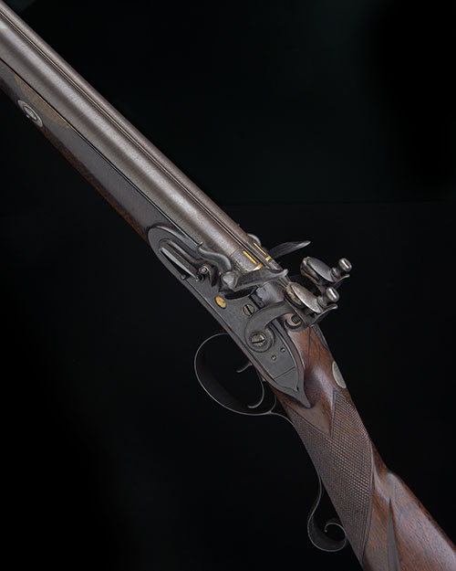 AN 18-BORE FLINTLOCK DOUBLE-BARRELLED SPORTING-GUN, serial no. TY-6770,