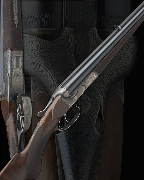 25 1/4in. nitro reproved chopperlump barrels (in 2015) with raised matt rib, open sights and bead fore-sight, the tubes engraved 'H. BARELLA. BERLIN. KAISERL. HOFBUCHSENMACHER', chambers sleeved, scroll-back treble-grip action with carved serpentine fences and short side-bolsters, automatic safety, fine acanthus scroll engraving, engraved steel triggerguard with horn tang, retaining some original colour-hardening, 15 3/8in. well-figured pistolgrip stock with cheekpiece, sling swivels and including 5/8in. leather covered recoil pad, fore-end with Deeley & Edge patent release catch and ornate horn finial, weight 7lb. 14oz.